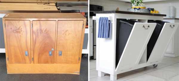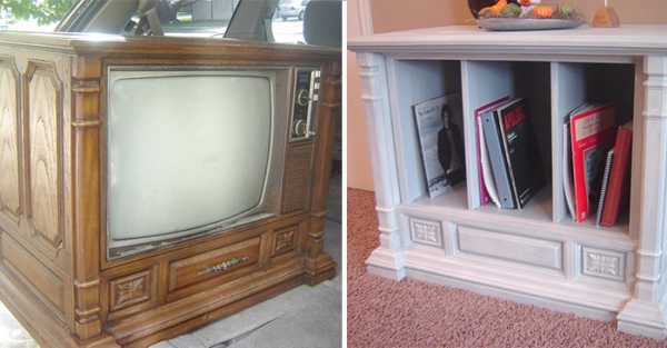 Переделку своими руками можно произвести из любого предмета старой мебели — шкафа, комода, тумбочки. Зачастую эти предметы остаются крепкими, но их потрепанный внешний вид непривлекательный. Поэтому их нужно немного ошкурить, покрасить, можно нанести декупаж или трафаретный рисунок.