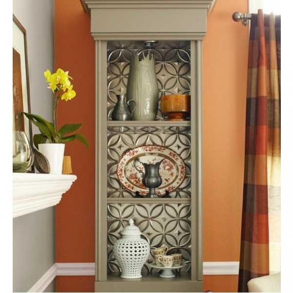 - В качестве фона может служить обезжиренная, тщательно обработанная при помощи наждака деревянная поверхность. Если же Вы хотите получить более яркий предмет интерьера, стенки и полки шкафа могут быть окрашены.