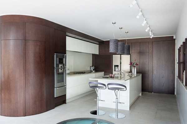Уместно смотрится древесина в классическом стиле, который тяготеет к добротной, качественной мебели. Однако, намного чаще венге выбирают для современных интерьеров — его запоминающаяся текстура станет интересным акцентом в лаконичном минимализме или стильном хай-теке.