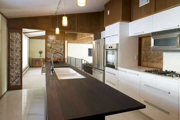Помимо превосходных внешних данных, венге имеет ряд качеств, которые позволяют применять эту древесину и в оформлении кухни.