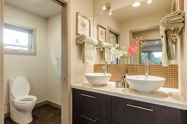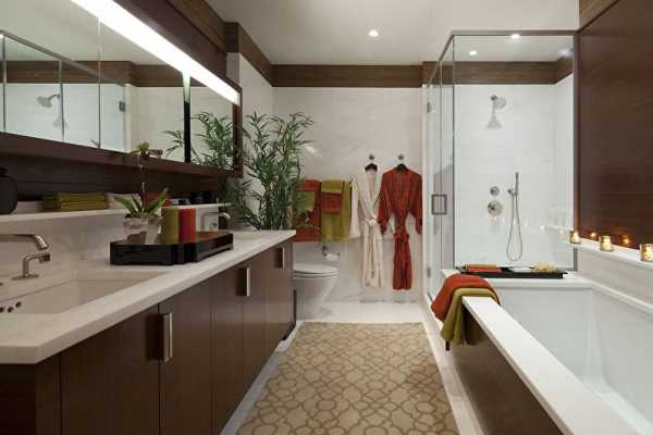 Устойчивость к грибку делает возможным примение мебели из венге и в ванной комнате.