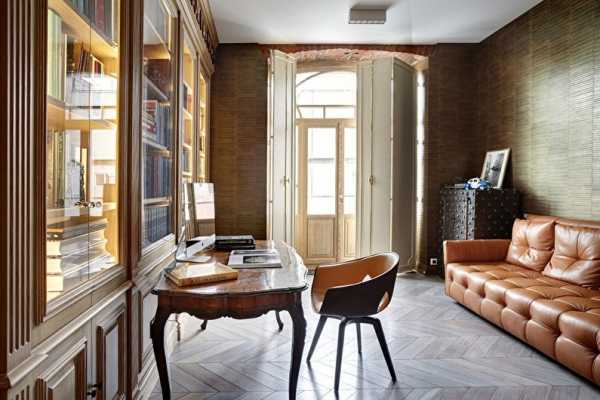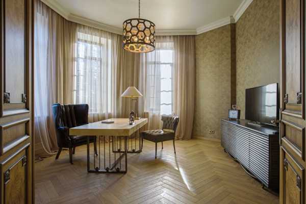 Идеальным местом для строгой структуры дерева является домашний кабинет. Эта часть обычно отличается от других помещений сдержанным дизайном, обилием естественных поверхностей и темных оттенков. Такая атмосфера не только помогает сосредоточиться, но также и создает довольно солидный образ.