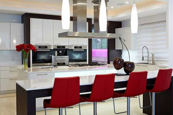 Шоколадный оттенок венге идеально впишется в кулинарную тематику кухни, а белый и ванильный только подчеркнут его тепло. Он часто выступает в качестве целых гарнитуров или отдельных предметов: стульев, столов, нижних ящиков, обрамленных мраморной столешницей.