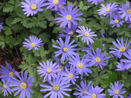 Анемоны: кавказская, нежная, корончатая — хорошо сочетаются с мелколуковичными культурами (сциллы, мускари), примулами и прочими рано цветущими растениями.