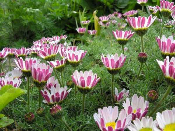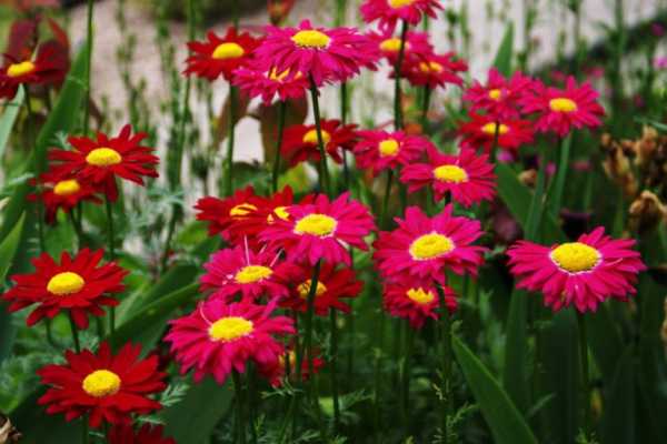 Также примечательна ромашка персидская, имеющая красные или розовые краевые цветы:
