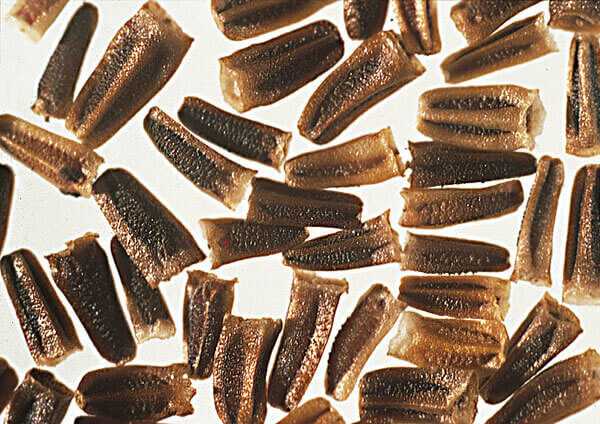 Ещё одно отличие этого растения от ромашки — наличие у семян его только трех граней. Это видно на фото: