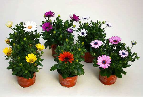 Такие цветные ромашковидные растения часто выращиваются дома в горшках, как красивые декоративные цветы.