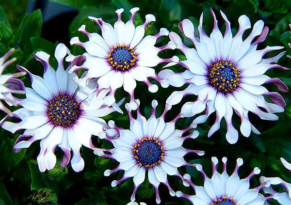 Наконец, декоративные формы остеоспермума могут иметь различные украшения на краевых цветках: перекручиваяния, загибы в виде ложек, вуалевые цветки. C такими модифицированными цветками он уже мало похож на ромашку.