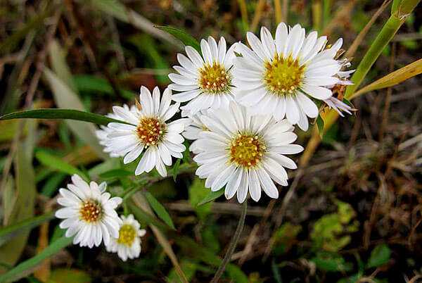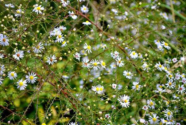 Несмотря на широкую известность внешнего вида, многие сорта астр походят на ромашки. Например, на фото ниже показана астра кустарниковая Symphyotrichum dumosum: