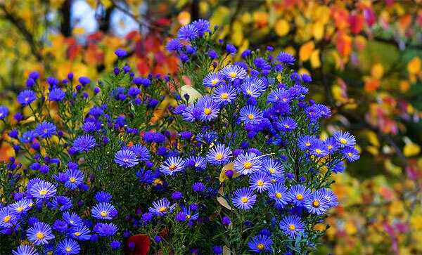 Разделяют сорта астр и по срокам их цветения. Поэтому любоваться клумбой с многолетними кустами можно на протяжении всего сезона – с мая по октябрь.