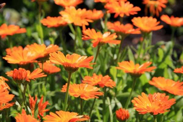 Является очень популярным цветком из-за своей неприхотливости и размножаемости. Если ее посадить на одном участке, то в следующем году ее будет в разы больше, так как ее коричневые семена, появившиеся на месте лепестков, ветром разлетаются по всему участку. Из этих семян в следующем году вырастают новые цветы. Так календула за несколько лет превращает свой участок в оранжевый океан. Ее ярко-оранжевые лепестки растут вокруг сердцевины в несколько слоев, сам цветок в зависимости от сорта бывает высотой от 20 до 65 сантиметров, цвести начинает с июня и заканчивает в сентябре. Славится своими лечебными свойствами, из ее соцветий изготавливают настойки и мази.
