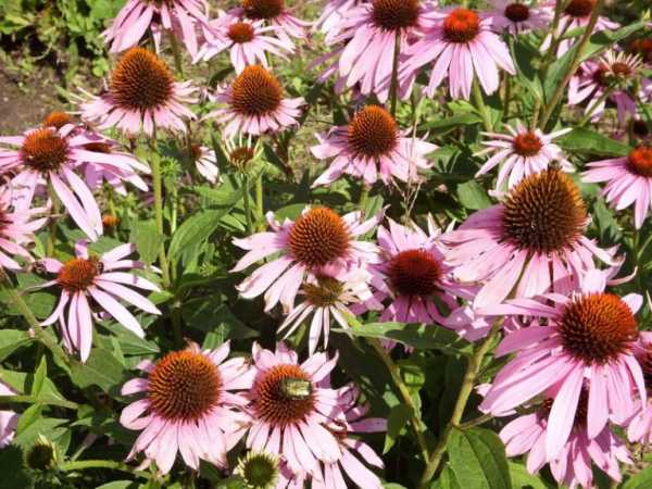 Хоть она и очень похожа на ромашку, но отличается от нее сильно выпуклой сердцевиной и пониклыми белыми или желтоватыми лепестками. Эхинацея бывает с розовыми и красными лепестками. Является самым высокорастущим цветком семейства ромашковых, может достигать в высоту до полутора метров. Радует своим цветением с июля по сентябрь. Существует не больше десяти ее видов. Как и календула, славится лечебными свойствами, из ее лепестков делают настойку, которую применяют для лечения ангины и простудных заболеваний. Настойкой можно лечить даже детей, так как она не вызывает аллергических реакций.