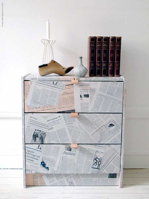 В качестве основного материала можно использовать также газеты, письма, трамвайные билеты — в общем все, что будет хорошо смотреться на вашей мебели.