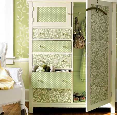 Остатки обоев могут также быть материалом для декора мебели. Ими оклеивают фасад шкафов, дверцы, внутренние стены. При этом рекомендуется использование клея ПВА. Богатый выбор самоклеющихся обоев значительно расширяет диапазон дизайнерского вдохновения.