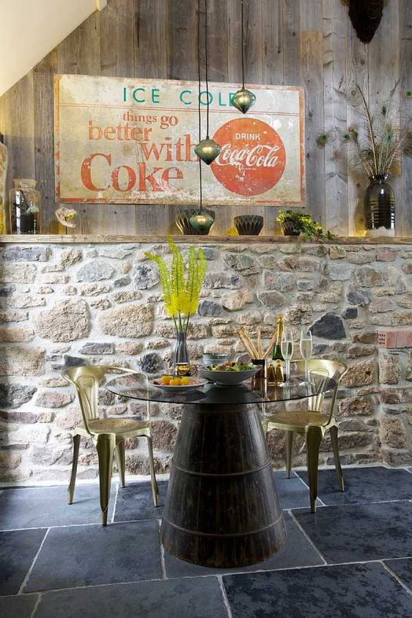 ΠΠ°ΠΌΠ΅Π½Π½ΡΠΉ Π΄Π΅ΠΊΠΎΡ ΡΡΠ΅Π½ Π΄Π΅Π»Π°Π΅Ρ ΡΡΡΠ½ΡΠΌΠΈ Π½Π΅Π±ΠΎΠ»ΡΡΠΈΠ΅ ΠΈ ΡΠΎΠ²ΡΠ΅ΠΌΠ΅Π½Π½ΡΠ΅ ΡΡΠΎΠ»ΠΎΠ²ΡΠ΅, Π³Π΄Π΅ Π³ΠΎΡΠΏΠΎΠ΄ΡΡΠ²ΡΡΡ ΠΈΡΠΊΡΡΡΡΠ²Π΅Π½Π½ΠΎΡΡΡ ΠΈ ΠΊΡΠ»ΠΈΠ½Π°ΡΠ½ΡΠ΅ ΠΈΠ·ΡΡΠΊΠΈ. ΠΡΠΎ ΠΏΡΠΎΠ΄ΡΠΌΠ°Π½Π½ΠΎΠ΅ Π²Π½Π΅Π΄ΡΠ΅Π½ΠΈΠ΅ Π±ΠΎΠ»Π΅Π΅ Π½Π°ΡΡΡΠ°Π»ΡΠ½ΠΎΠΉ ΠΏΠΎΠ²Π΅ΡΡ Π½ΠΎΡΡΠΈ ΠΏΠΎΠ»Π½ΠΎΡΡΡΡ ΠΌΠ΅Π½ΡΠ΅Ρ Π²Π½Π΅ΡΠ½ΠΈΠΉ Π²ΠΈΠ΄ ΠΊΠΎΠΌΠ½Π°ΡΡ, ΠΎΡΡΠ°Π²Π»ΡΡ Π½Π΅ΡΡΠΎΠ½ΡΡΡΠΌ Π΅Π³ΠΎ ΡΠΎΠ²ΡΠ΅ΠΌΠ΅Π½Π½ΡΡ Π°ΡΠΌΠΎΡΡΠ΅ΡΡ. ΠΡΠ²Π΅ΡΠ΅Π½ΠΈΠ΅, Π΄Π΅ΠΊΠΎΡ ΠΈ Π°ΠΊΡΠ΅ΡΡΡΠ°ΡΡ ΠΈΠ· Π΄ΡΡΠ³ΠΎΠ³ΠΎ ΡΡΠΈΠ»Ρ, Π½Π°ΠΏΡΠΈΠΌΠ΅Ρ, ΠΈΡΠΏΠ°Π½ΡΠΊΠΎΠ³ΠΎ ΠΊΠΎΠ»ΠΎΠ½ΠΈΠ°Π»ΡΠ½ΠΎΠ³ΠΎ ΠΈΠ»ΠΈ ΡΠ΅ΡΠΌΠ΅ΡΡΠΊΠΎΠ³ΠΎ ΠΏΠΎΠΌΠΎΠ³ΡΡ Π΄ΠΎΡΡΠΎΠΉΠ½ΠΎ ΠΏΠΎΠ΄ΡΠ΅ΡΠΊΠ½ΡΡΡ ΡΡΠΎ Π²Π½Π΅Π΄ΡΠ΅Π½ΠΈΠ΅.