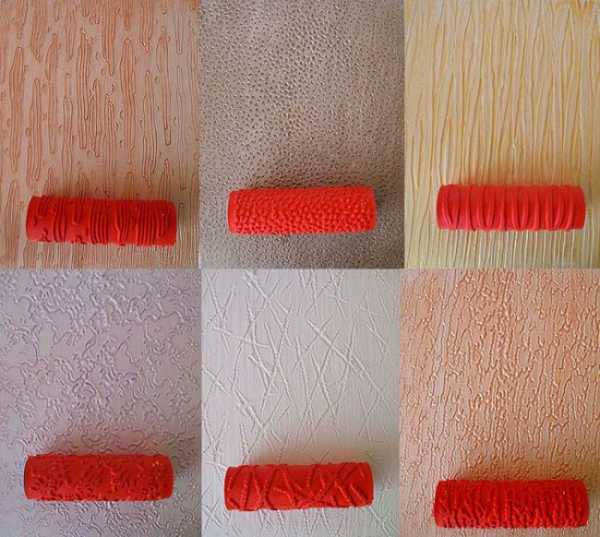 Легкая промышленность предлагает в обширном ассортименте поролоновые или меховые валики, кроме того существуют специальные валики с тиснением для придания стенам определенного рисунка. Часто валики применяются в формировании базового рельефа, на поверхность которого, впоследствии декорируется яркими и выраженными штрихами. Внешний оттенок «базового» рельефа пропорционально зависит от размера и жесткости ворса. Например прокатка поролонового инструмента придает эффект мелких выступов и впадин. Прокатка длинного ворса обеспечит четко выраженные и заметные перепады.