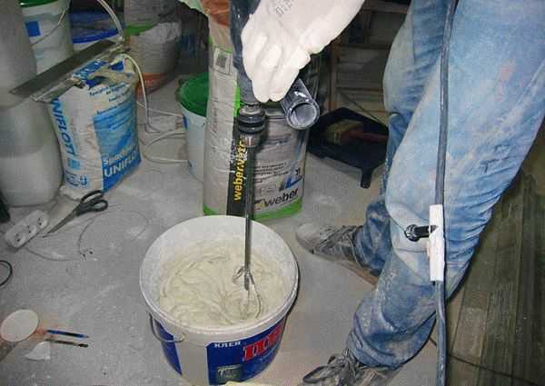 - Первым делом 1,5 л воды выливают в сухую смесь и тщательно перемешивают до образования однородной массы.