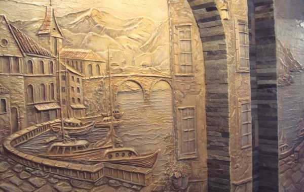 Можно экспериментировать и с другими предметами. Для создания рисунка можно наносить новый раствор на высохший или вырезать из имеющегося. Если вы решили украсить стены последним способом, то не забывайте, что глубина вырезанных частей не должна превышать 5 мм.