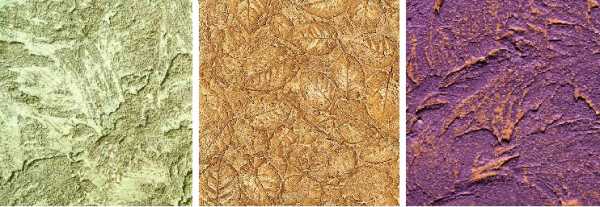 Фактурный вид настенного декоративного покрытия применяется для создания имитации поверхности камня, дерева, бархата и шёлка. Материал обладает неплохими маскирующими свойствами (скрывает дефекты поверхности), может использоваться для облицовки стен влажных помещений.
