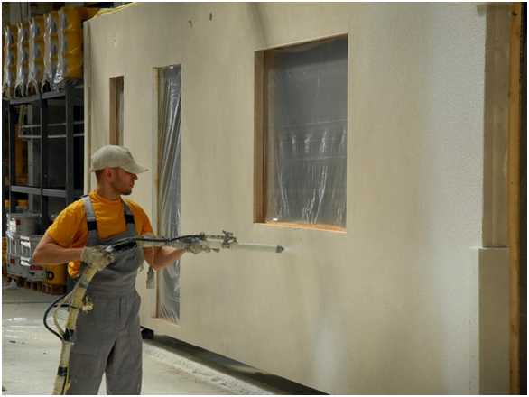 - Подготовка строительного состава и нанесение декоративной штукатурки.
