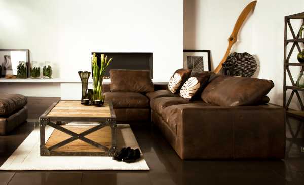 На фото темно-красный диван, отделанный масляной кожей.