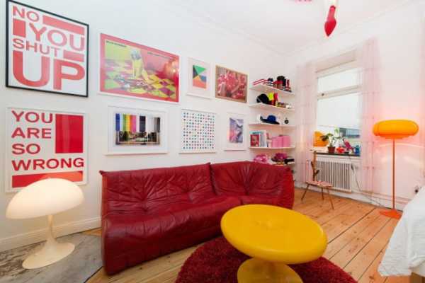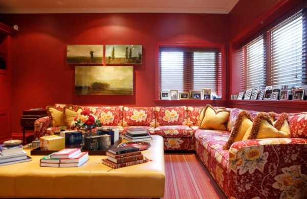 Учитывая природу красного цвета, стоит тщательно подбирать цвет свет. При неправильном оформлении комната может получиться давящей.