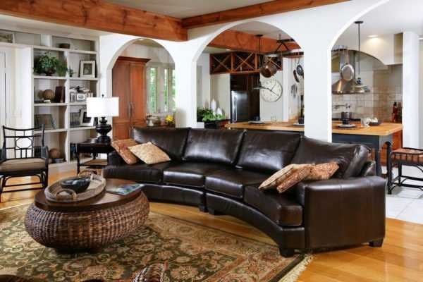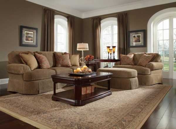 Дизайн мягкой мебели должен быть продолжением интерьерной задумки зала. Плавные формы и бархатная или велюровая обивка украсят интерьер неоклассика и будут смотреться стильно. Прямые линии и однотонная бежевая обивка подойдут для оформления современного и лофт интерьера.