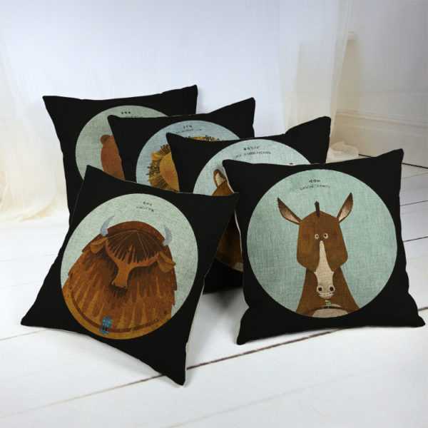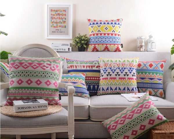 При использовании мебели разного цвета, подушки с общим принтом объединят картину интерьера. Материал подушек может быть контрастным или в единой цветовой палитрой с диваном или шторами.