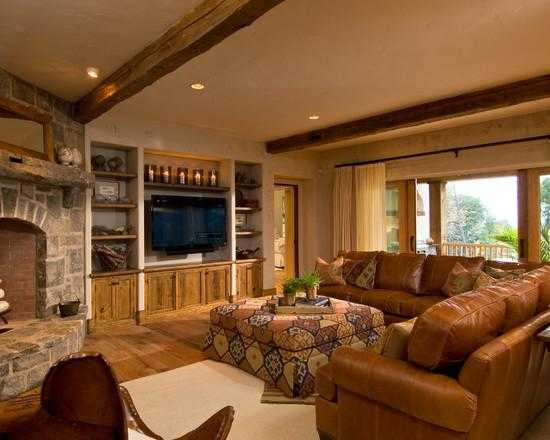 Наполнить комнату отдыха простором и зрительно увеличить, поможет изящный переход от холодного белого до насышенного кремового; от оттенка топленого молока до пудрового с розоватым. Деревянная мебель темно-бежевого цвета всегда хорошее дополнение к дизайну гостиной с бежевым диваном. Такое оформление настраивает на мысли о загородном доме. Яркие гаммы при этом не используются.