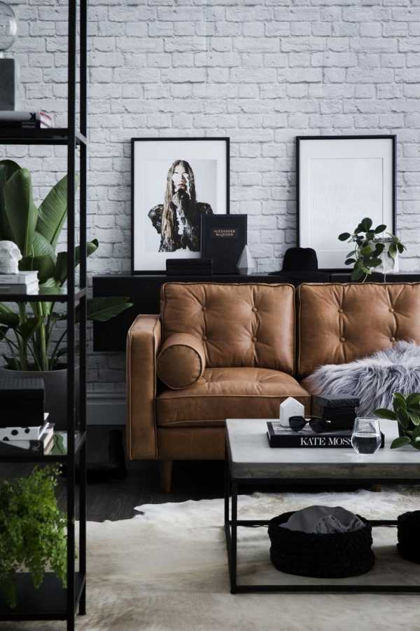 Интересный и модный стиль лофт позволяет сочетать смелые цвета и фактуры. На фоне кирпичных стен одинаково шикарно будет смотреться бархатная софа или большой угловой бежевый диван.
