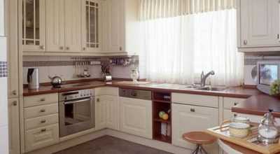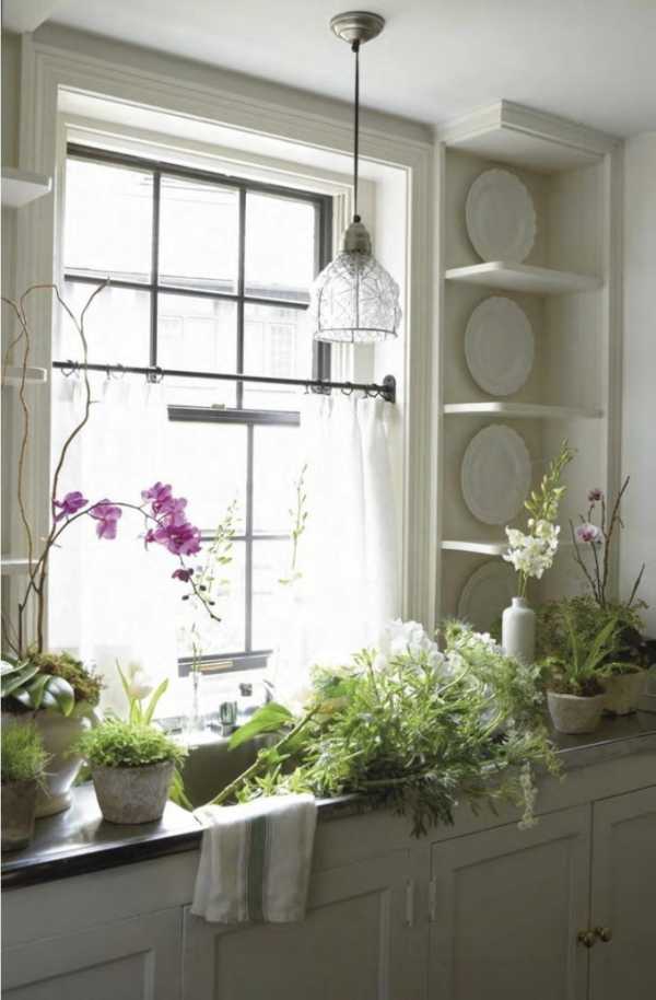 — Шторы на кухонном окне, под которым располагается раковина, должны непременно быть короткими, иначе они постоянно будут намокать от брызг.