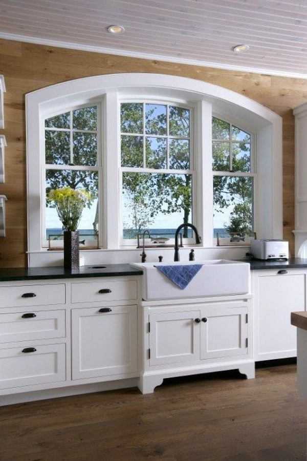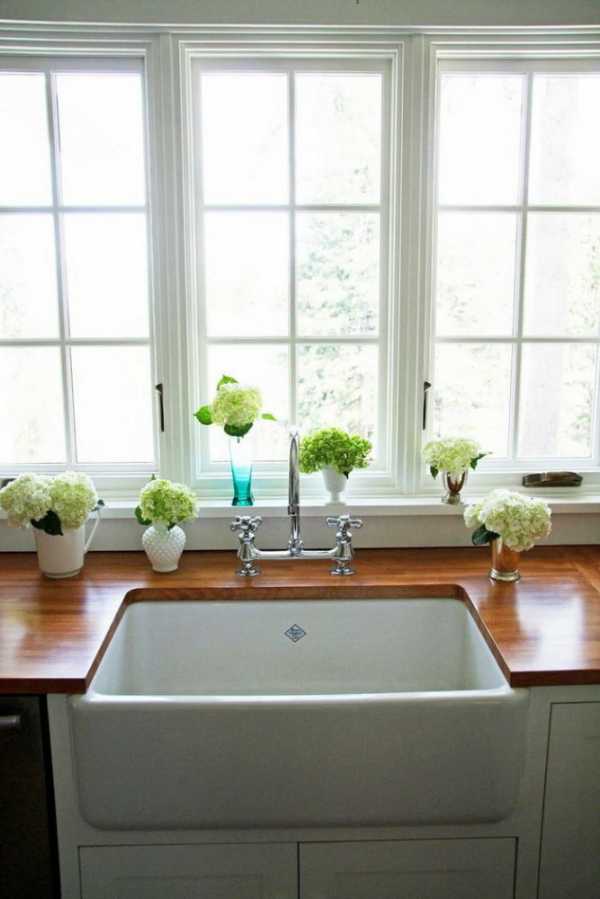 Например, если вы живёте за городом, то во время монотонного мытья посуды можно наслаждаться прекрасными картинами природы. А в городской квартире можно любоваться современным урбанистическим пейзажем, смотреть, как летнее расплавленное солнце плавно стекает за силуэты многоэтажек. Если задуматься, то становится очевидным: раковина под кухонным окном – это именно то, чего нам так не хватало в интерьере!