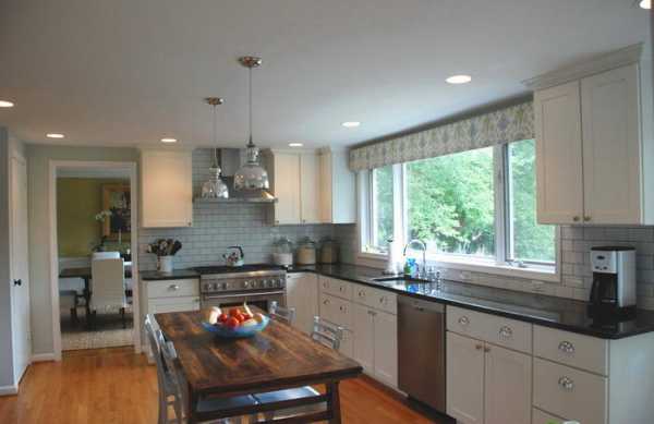 Если вы планируете дизайн кухни с двумя окнами, всегда выбирайте однотипное оформление для обоих. При установке мойки под проемом, лучше не выбирать шторы из текстиля, заменив их жалюзи. Правильное оформление помещения позволит сделать его максимально комфортным, стильным и уютным.