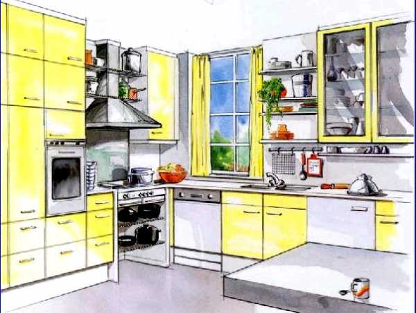 — Планируя размещение предметов интерьера и бытовой техники, помните о том, что кухонная плита не должна располагаться под окном. Интересное решение: расположить всю меблировку вдоль одной стены.