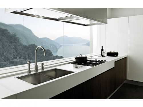 — Перед установкой смесителя на мойку убедитесь в том, что форма крана вписывается в общий дизайн и не мешает свободно открывать окно. Выбор различных аксессуаров в современных магазинах достаточно обширен, поэтому подобрать смеситель нужного размера и конфигурации не составит труда. Так, кран с выдвижной лейкой очень функционален и удобен в использовании.