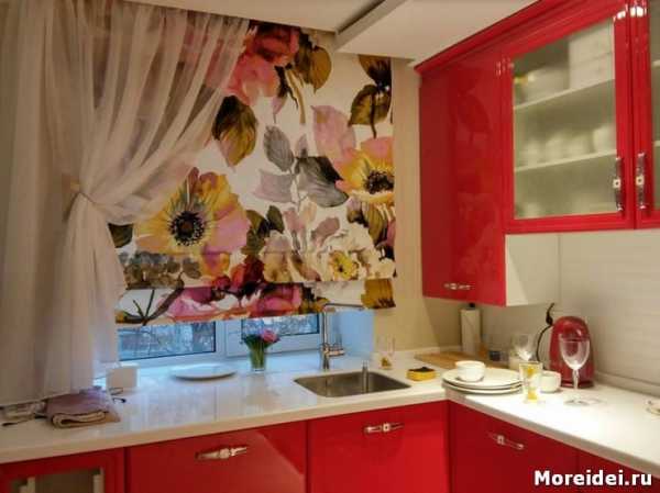 Благодаря разнообразным по стилю и назначению штор, дизайн кухни с окном позволяет хозяйке проявить себя с творческой стороны. Оформление может быть выполнено различными видами штор:
