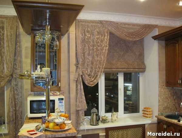 Дизайн окна кухни предполагает выбор и использование различных видов штор. При всем разнообразии украшений для окон, занавески до сих пор занимают первое место в рейтинге.