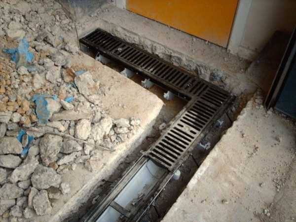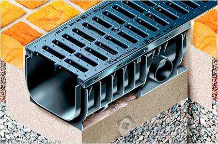 Дренаж линейного типа Для стока применяют пластиковые или железобетонные лотки. Они оснащены сверху решеткой, которая прикрывает желоб. В системе есть сборщики мусора, которые облегчают процесс ухода за лотками.