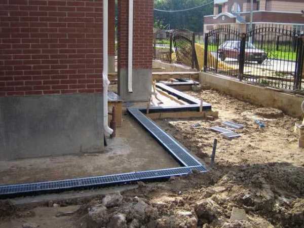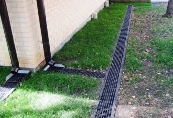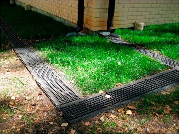 При точечной планировке лотки устанавливаются, в первую очередь, под сточные трубы дома. В противном случае вода будет постоянно попадать на фундамент и на участок.