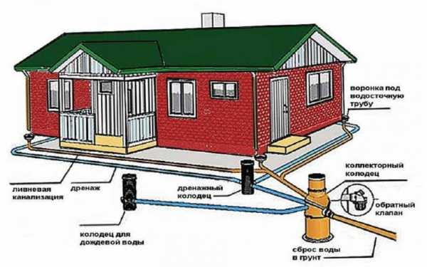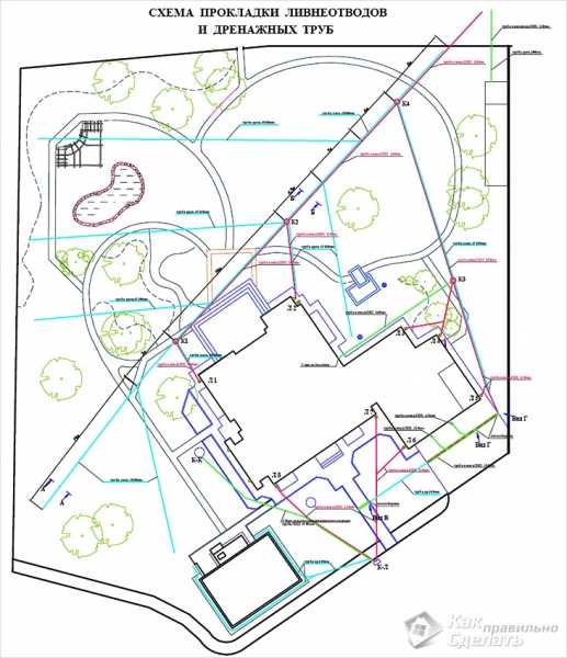 Схема прокладки ливнеотводов и дренажной системы