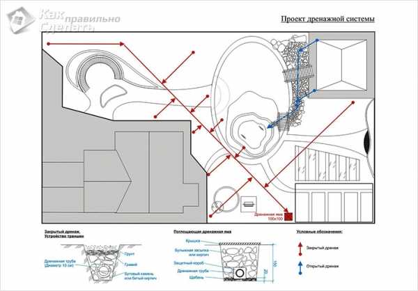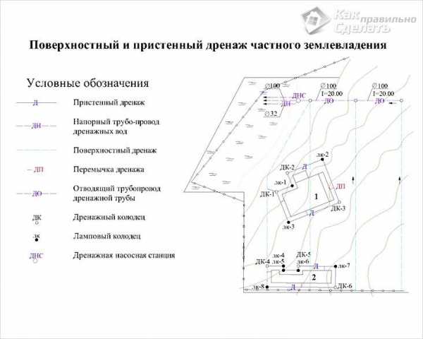 Схема дренажа и водоотвода