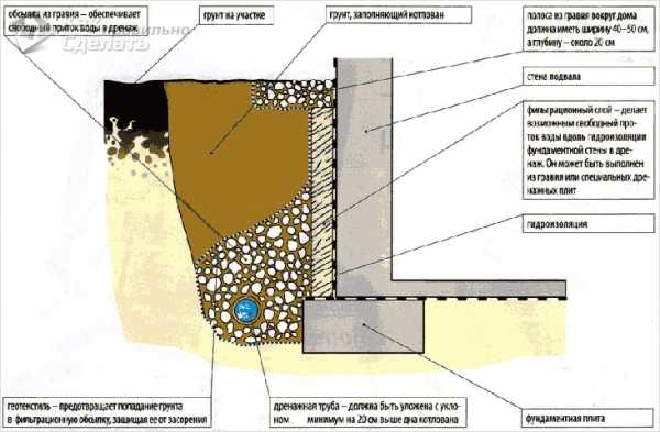 - необходима защита фундамента от дождевых вод;