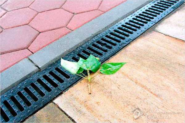 Лотки нужно установить так, чтобы они находились под землей. От них придется провести трубы к канализации. Сверху лоток прикрывается решеткой. Это и защитный, и декоративный элемент одновременно. Для очистки лотка надо только поднять решетку и убрать из емкости мусор.