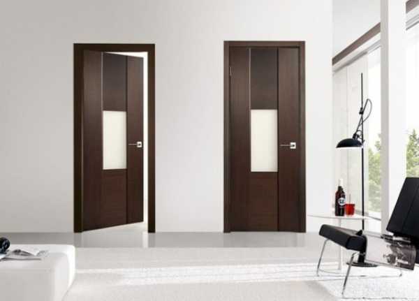 Модели из пластика часто используются в общественных помещениях в качестве входных или служат выходом на балкон, лоджию, террасу. Для дома ставят ламинированные, шпонированные и стеклянные варианты дверных конструкций, например, как межкомнатные двери в стиле хай-тек на фото.