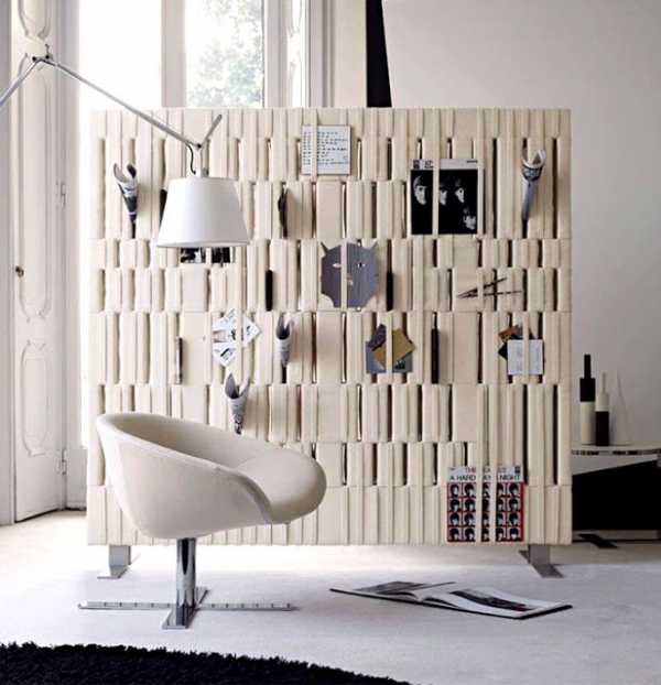 - Новые функциональные идеи – изюминка дизайна гостиной в современном стиле, например уникальная экстравагантная перегородка от дизайнеров К. Герхардс и А. Глюкер имеет высокую прочность и при этом