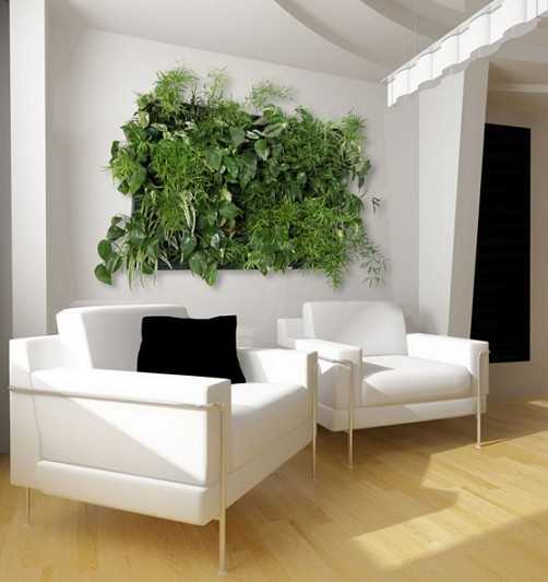 Нередко можно увидеть стильные приемы оформления: картины из мха или вертикальные озеленение живыми растениями.