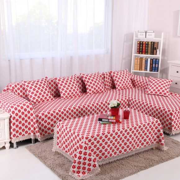 Стандартные накидки хороши для гарнитуров привычной всем формы. Если же у вас в комнате расположился угловой диван, с большой долей вероятности вам придется шить покрывало на заказ. Оно может состоять из одного куска или нескольких фрагментов. Чтобы зафиксировать накидку на диване нестандартной формы используются пуговицы, петли, шнуры или кнопки.