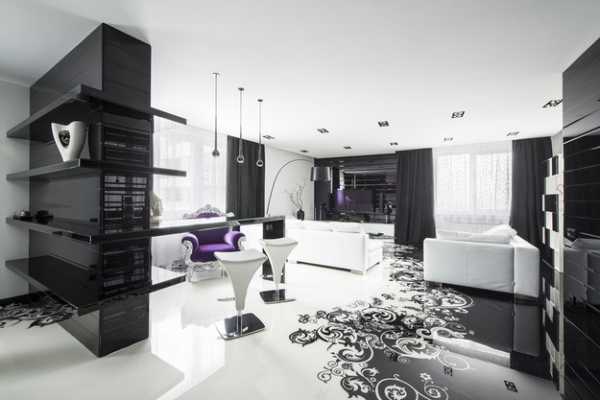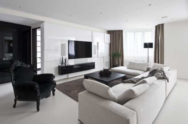 - Гостиная в бело-черных тонах: монохромное величие универсального помещения