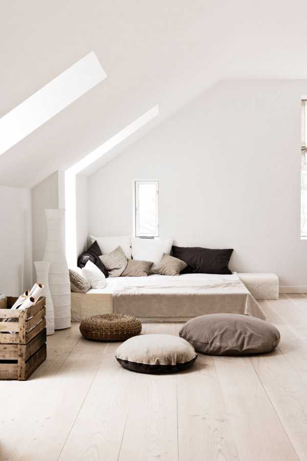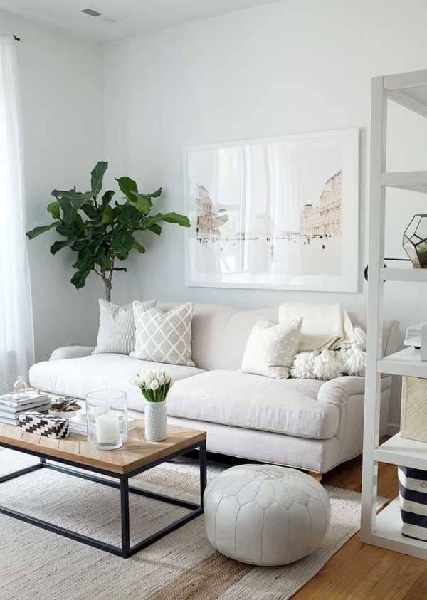 - Присутствие аксессуаров минимальное: диванные подушки или одна большая черно-белая картина.
