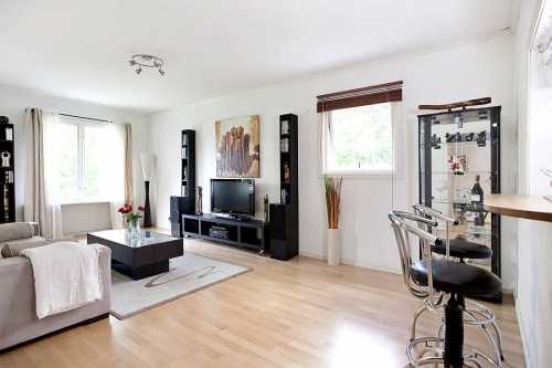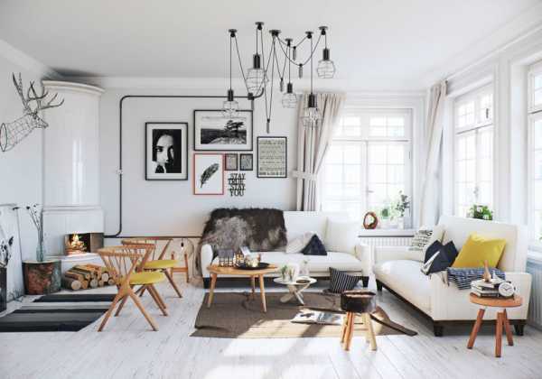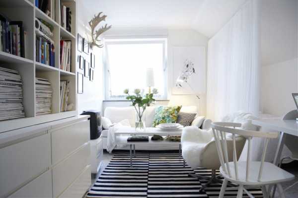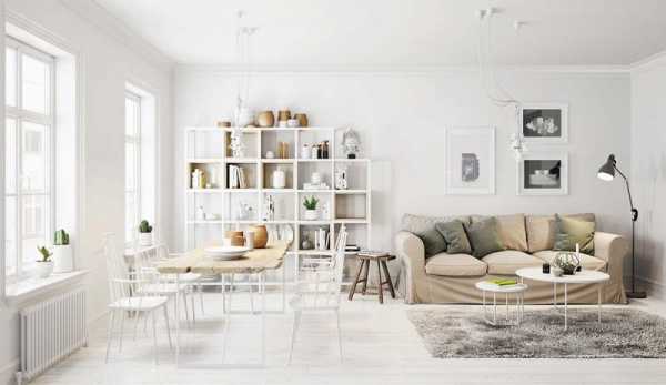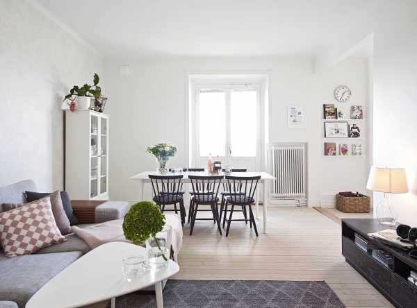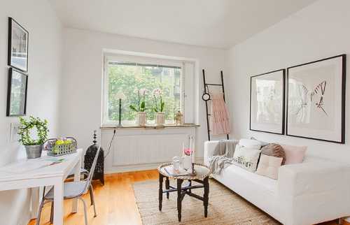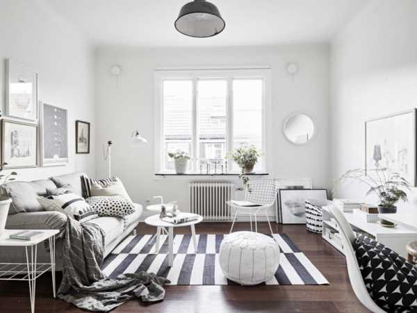 Скандинавский стиль. Наиболее популярный выбор владельцев квартир с небольшой площадью, так как использование именно этого стиля позволяет создать лаконичный минималистический интерьер, позволяющий на несколько шагов приблизиться к природе. Основными составляющими гостиной, оформленной в скандинавском стиле, являются белые стены, на которых размещено несколько ярких цветовых акцентов, самобытный пол из светлой древесины и мебель нейтральных оттенков. Стоит отметить, что белый цвет является фаворитом скандинавского стиля, приближенного к природе.